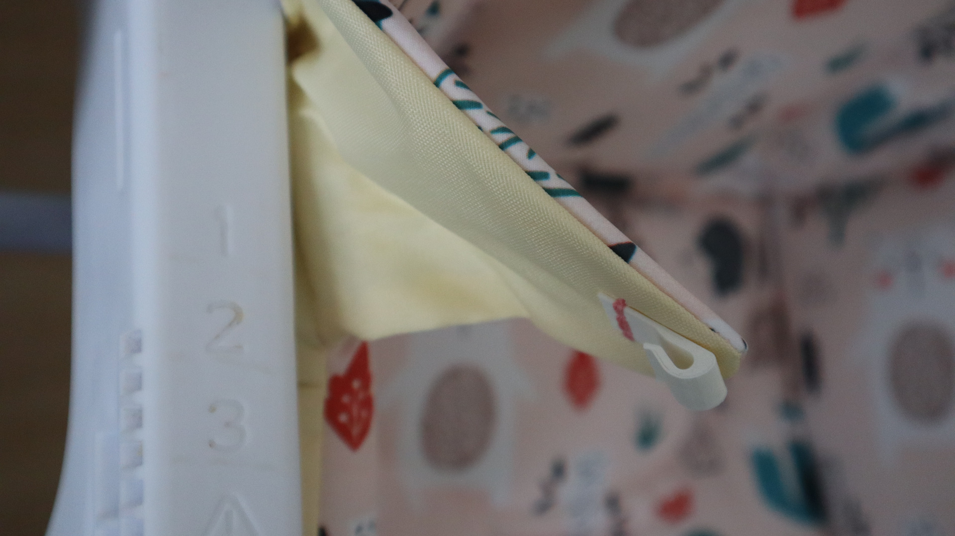 Včetně plastových háčků na bočnicích, sloužících k přichycení potahu na židličku.