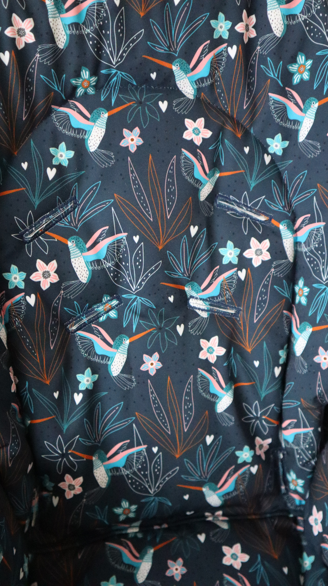 Softshell pro šití potahů používám zimní. Ze spodní strany je fleece, který je ale uvnitř potahu. Do kontaktu s dětskou pokožkou nepřichází, dítě se zbytečně v létě nezahřívá, nicméně tato vrstva fleecu zaručuje měkkost a pohodlné sezení.