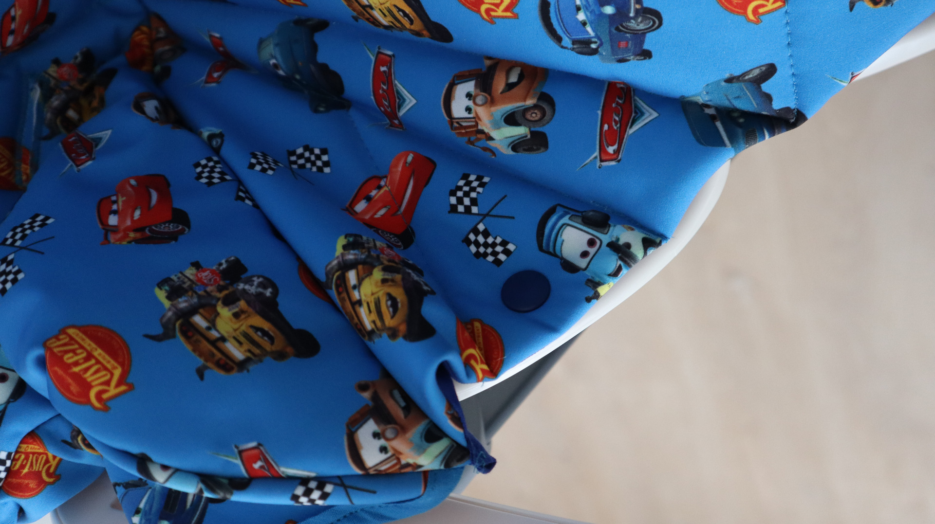 Softshell pro šití potahů používám zimní. Ze spodní strany je fleece, který je ale uvnitř potahu. Do kontaktu s dětskou pokožkou nepřichází, dítě se zbytečně v létě nezahřívá, nicméně tato vrstva fleecu zaručuje měkkost a pohodlné sezení.