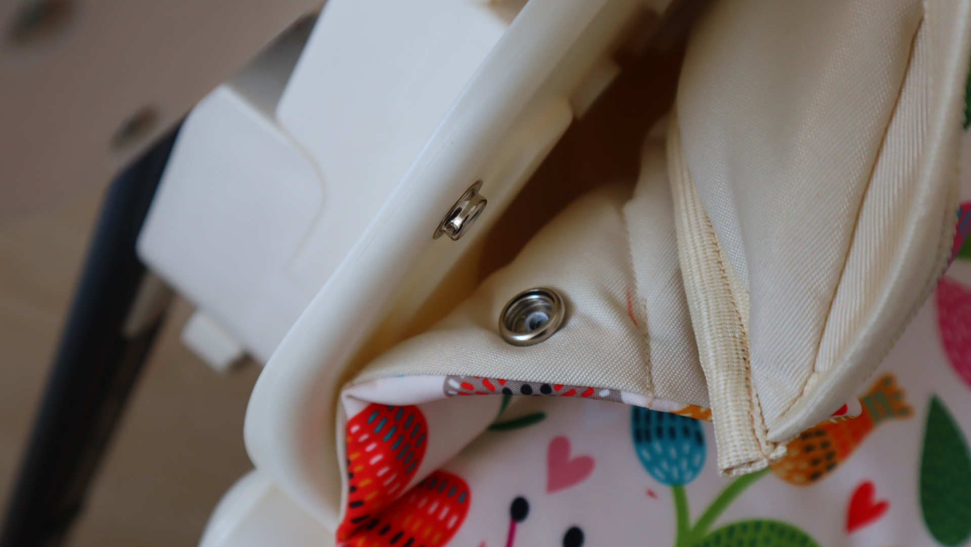 Softshell pro šití potahů používám zimní. Ze spodní strany je fleece, který je ale uvnitř potahu. Do kontaktu s dětskou pokožkou nepřichází, dítě se zbytečně v létě nezahřívá, nicméně tato vrstva fleecu zaručuje měkkost a pohodlné sezení.
