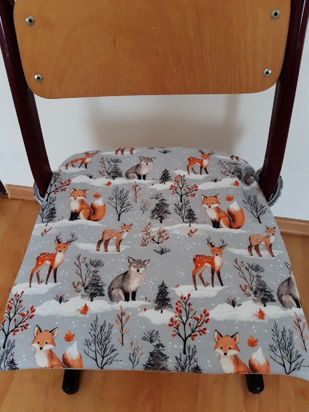 šité na míru na školní židličky (na fotografiích jsou židličky z I.