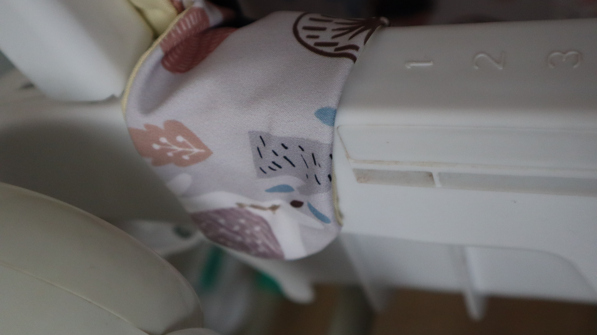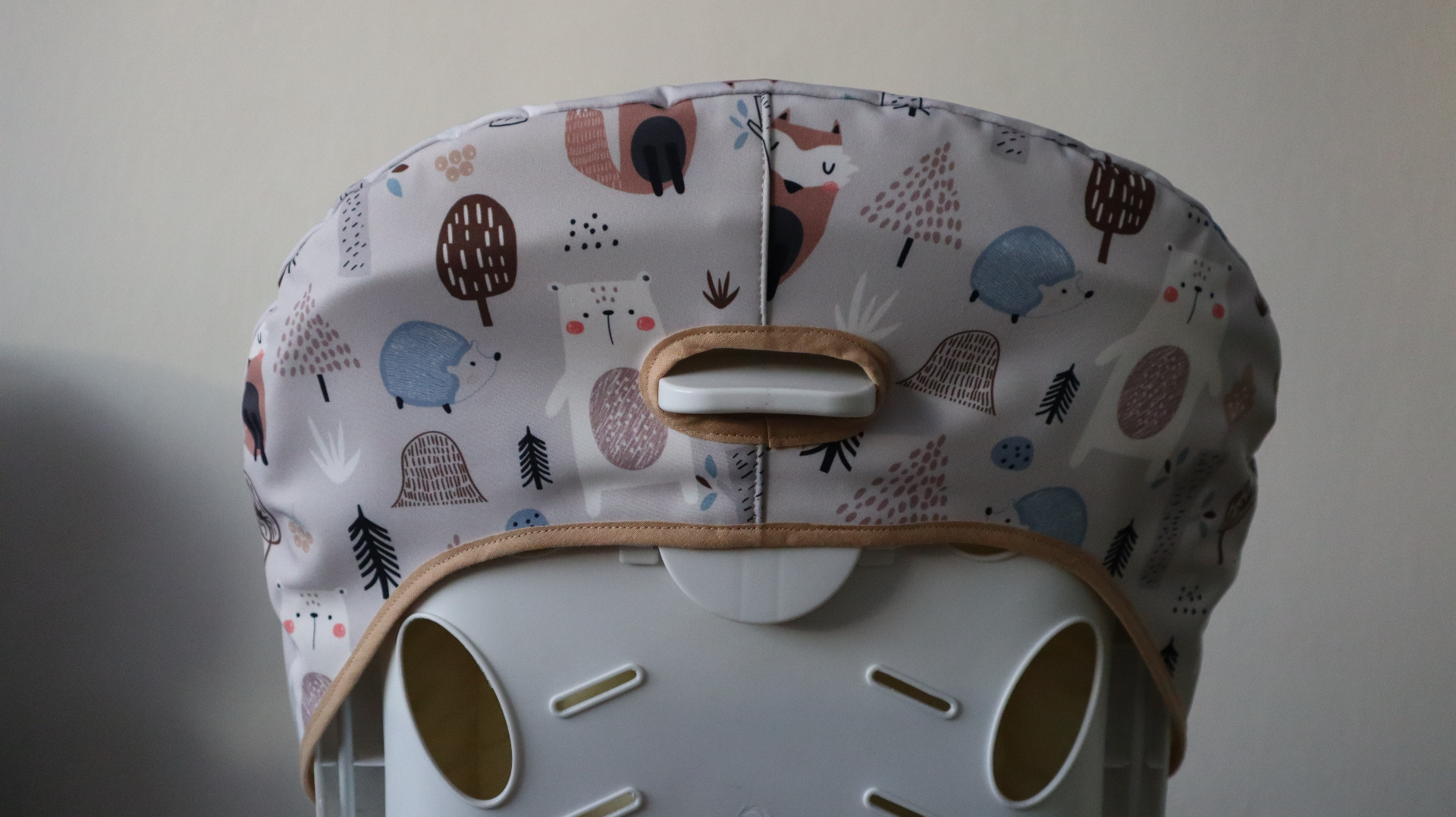 Včetně plastových háčků na bočnicích, sloužících k přichycení potahu na židličku.