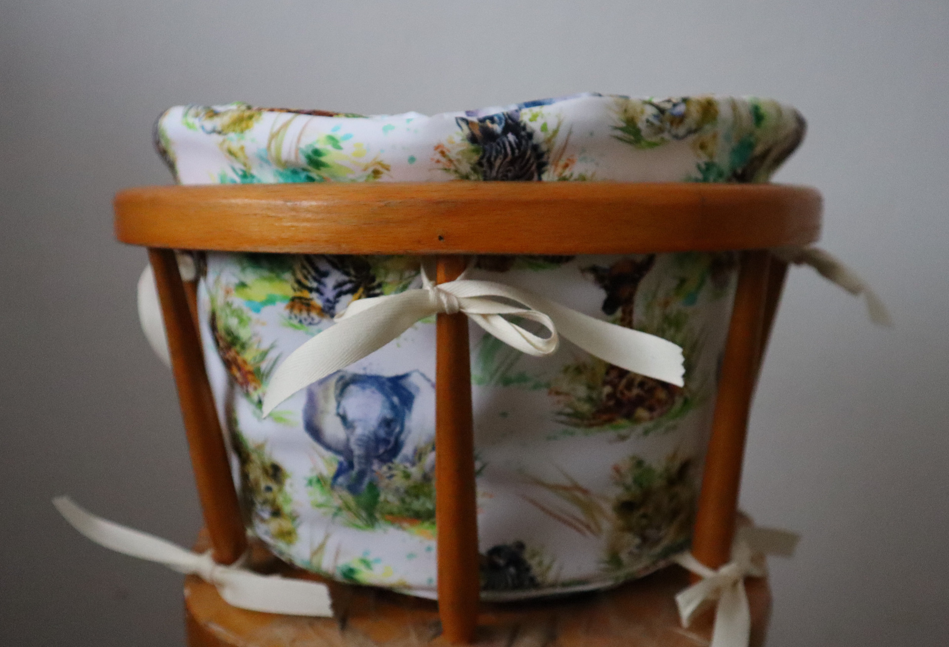 Potah je vhodný na židličky, které sloužily už našim maminkám. Lze je rozložit na sedátko a stoleček (viz. ilustrační fotografie v galerii).
