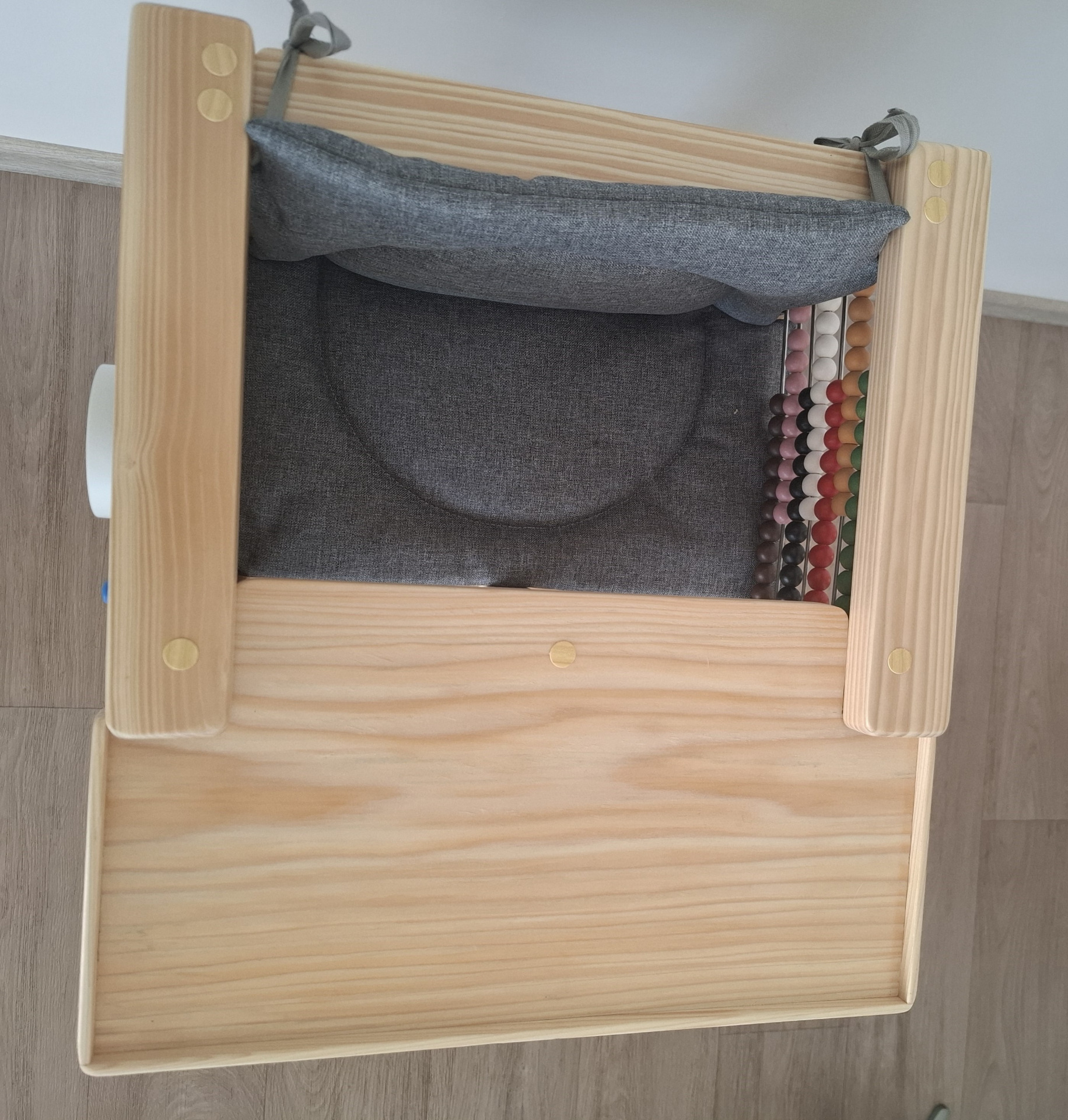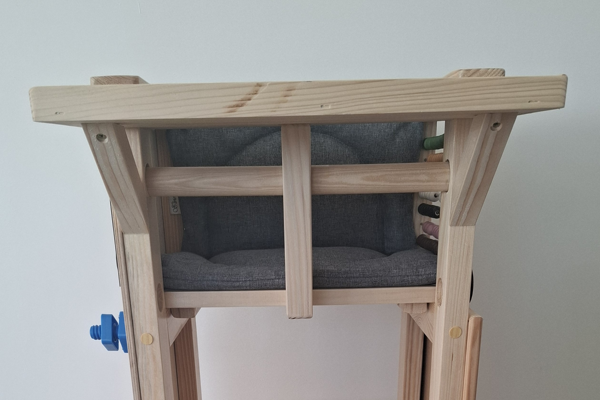 Uchycení podsedáku ke konstrukci je řešeno šňůrkami.